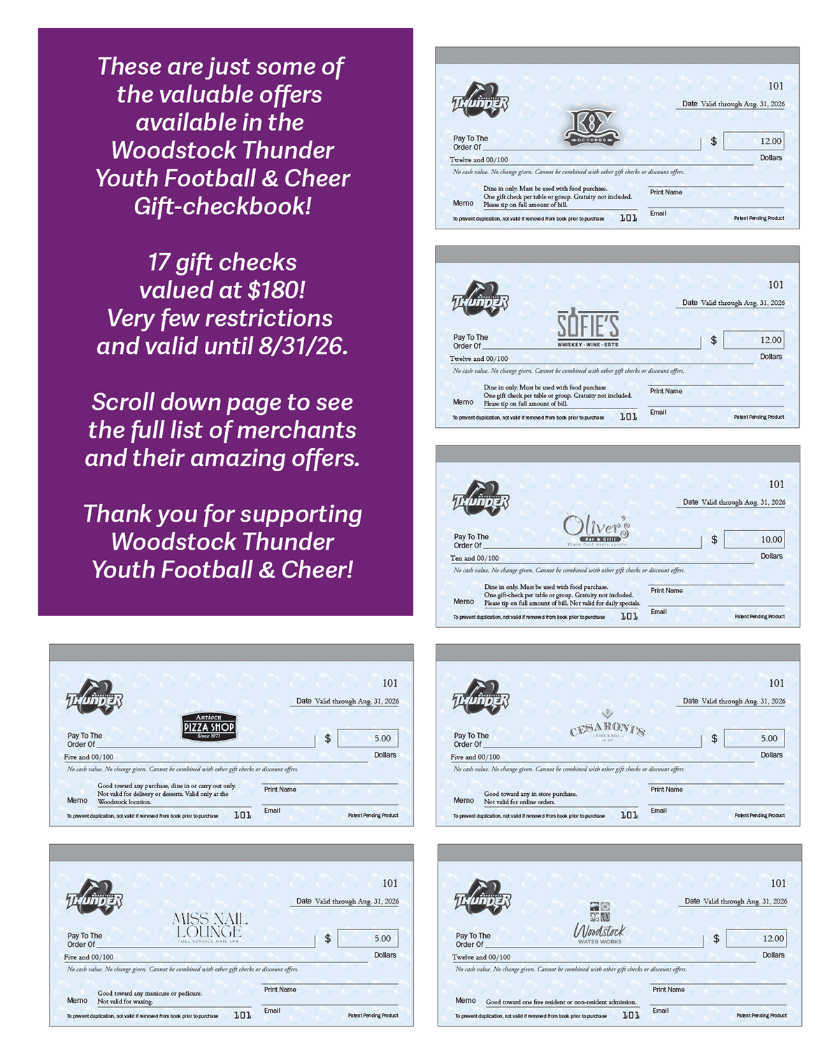 Expiration date of Gift-checks: 8/31/2026