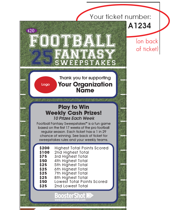 17 weeks of the pro football regular season. Grab your ticket and see if you’re a prize winner!